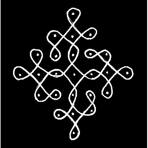 Kambi Kolam No.1 7 dots. Leave one dot at both ends. Stop at 1 dot. Check These Out :Kambi Kolam No. 186Kambi Kolam No. 136Flower Kolam No. 101