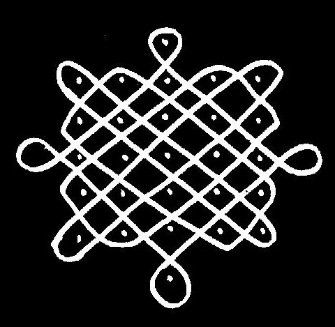 Kambi Kolam No.7 7 dots. Leave one dot at both ends. 5 dots two times. Stop at 1 dot. Check These Out :Kambi Kolam No. 143Border Kolam No. 1Flower Kolam No. 104