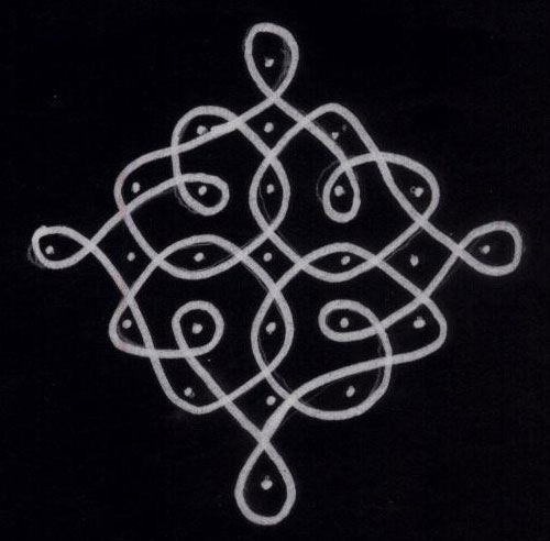 Kambi Kolam No.8 7 dots. Leave 1 dot at both ends. Stop at 1. Check These Out :Border Kolam No. 2Pongal Kolam No. 3Kambi Kolam No. 195
